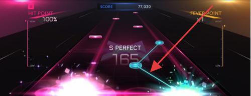 1、進(jìn)入游戲演奏界面,緊盯軌道音符,在其抵達(dá)判定區(qū)時(shí)精準(zhǔn)點(diǎn)擊,爭(zhēng)取【S PERFECT】評(píng)價(jià),積累分?jǐn)?shù)提升表現(xiàn)。