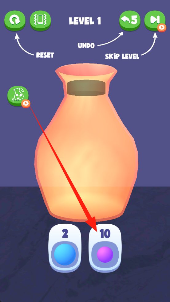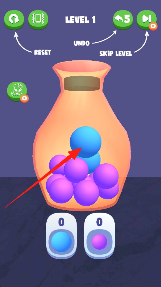 1、優(yōu)先觀察容器形狀與障礙物分布,預(yù)判填充路徑,通過快速點擊屏幕投放球體,滑動調(diào)整角度,長按激活特殊技能。