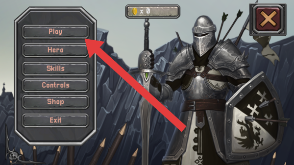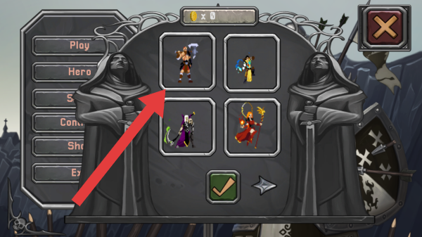 2、包括Play、Hero等選項(xiàng),右側(cè)可選擇的英雄角色有4個(gè),分別是持武器的近戰(zhàn)風(fēng)格角色、身著藍(lán)黃服飾的角色、持紫色武器的角色、身著紅袍的角色。