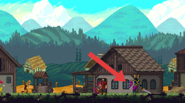3、場(chǎng)景為中世紀(jì)風(fēng)格的村莊,有木質(zhì)房屋、水井等建筑,背景是連綿的山脈和茂密的樹(shù)林,是游戲中的可操控角色或NPC。