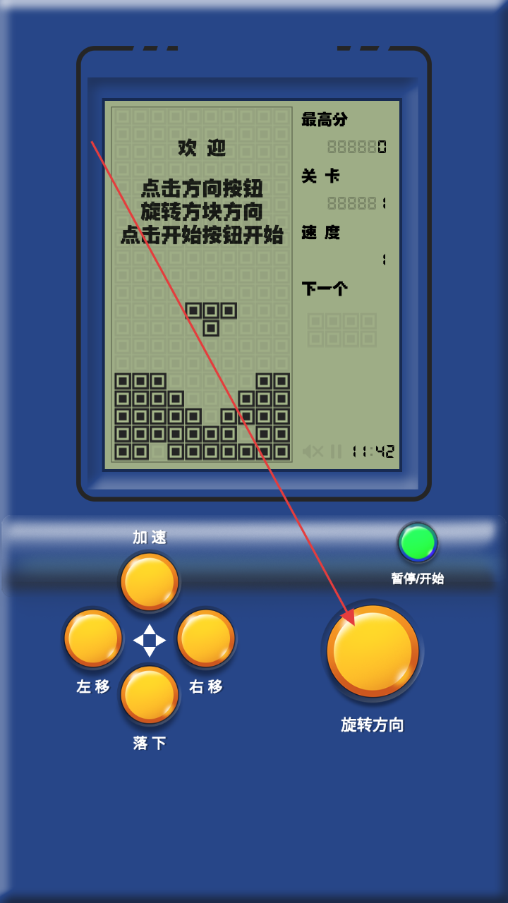 2、用方向按鈕(左移、右移等)調(diào)整方塊位置,點(diǎn)擊“旋轉(zhuǎn)方向”改變方塊形態(tài),使其嵌入空位。