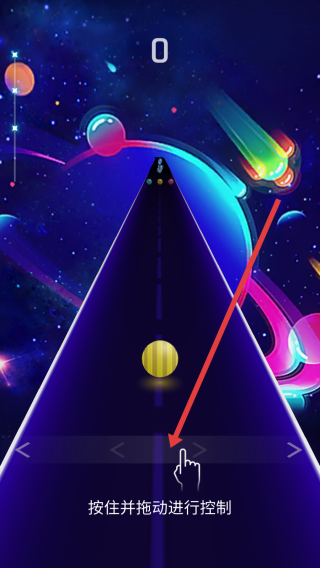2、操作時(shí),“按住并拖動(dòng)進(jìn)行控制”,讓球匹配軌道同色節(jié)點(diǎn),跟隨音樂(lè)完成挑戰(zhàn)。