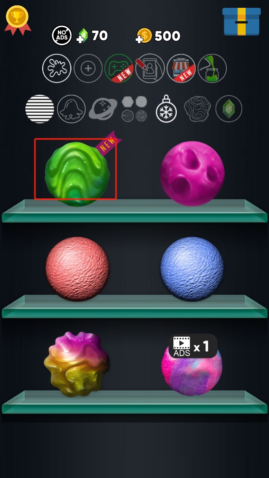 2、裝飾個性軟泥:使用獲得的獎勵解鎖新顏色和裝飾道具,給軟泥添加閃粉、混合顏色,打造獨(dú)一無二的軟泥樣式,讓視覺體驗更豐富。
