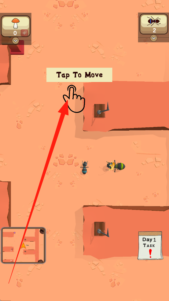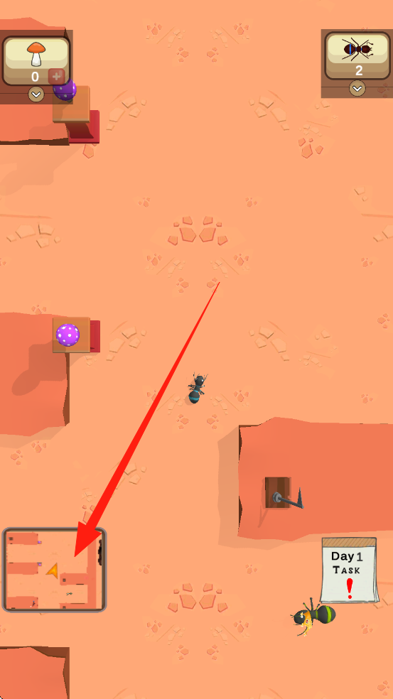 1、優(yōu)先觀察地形與資源分布,預(yù)判發(fā)展方向,通過快速點擊屏幕分配螞蟻職責,滑動調(diào)整視角,長按分析關(guān)鍵信息。