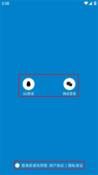 3、勾選同意用戶協(xié)議以及隱私政策后,選擇QQ或微信登錄。