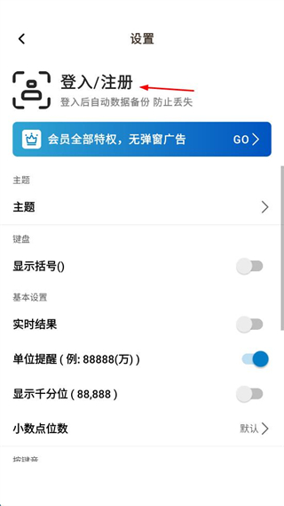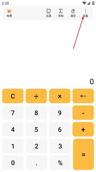 1、打開計(jì)算器軟件,點(diǎn)擊右上角“設(shè)置”。