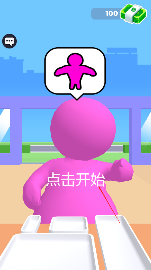 1、在游戲初始界面,點(diǎn)擊“點(diǎn)擊開(kāi)始”,開(kāi)啟美食投喂挑戰(zhàn),粉色角色頭頂需求標(biāo)識(shí),在后續(xù)環(huán)節(jié)為其搭配食物,借啟動(dòng)操作進(jìn)入玩法,感受角色需求與投喂玩法的銜接。
