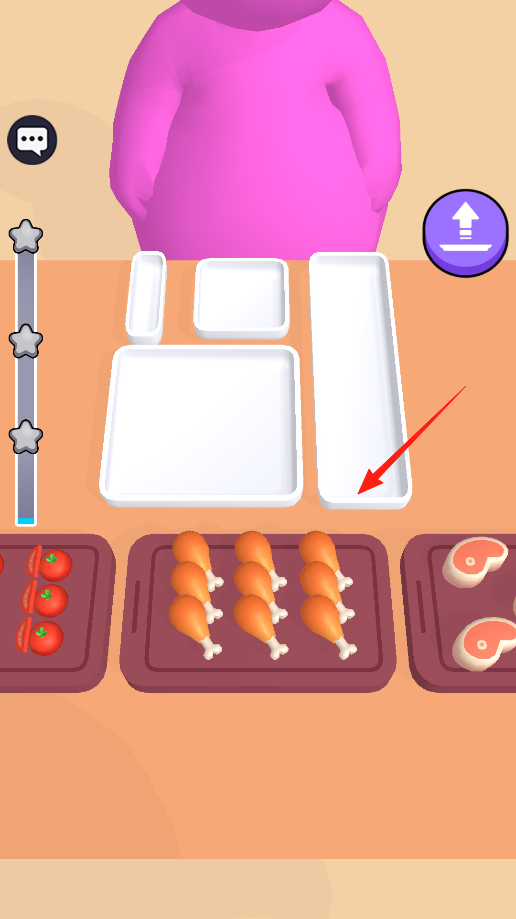 2、進(jìn)入配餐環(huán)節(jié),觀察粉色角色身前的餐盤(pán),拖動(dòng)雞腿等食材,放入對(duì)應(yīng)盤(pán)子,需按角色需求搭配,借拖動(dòng)機(jī)制完成食材分配,體驗(yàn)配餐的策略性,感受玩法的互動(dòng)操作。