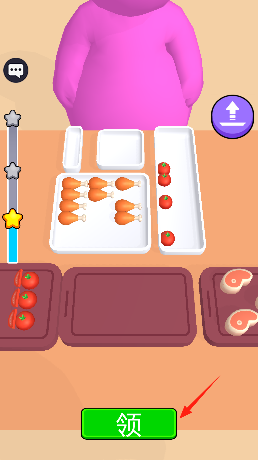3、配餐完成后,點(diǎn)擊“領(lǐng)”按鈕,提交搭配好的食物給粉色角色,系統(tǒng)會(huì)根據(jù)搭配合理性給予反饋,完成投喂流程,體驗(yàn)從配餐到交付的完整玩法,感受結(jié)果驗(yàn)證的樂(lè)趣。