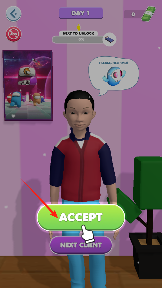 2、進(jìn)入客戶界面,面對求助的客戶,點擊“ACCEPT”接受委托,客戶有明確需求,接受后開啟服務(wù)流程,借委托接受機制,承接任務(wù),體驗服務(wù)類玩法的互動性。