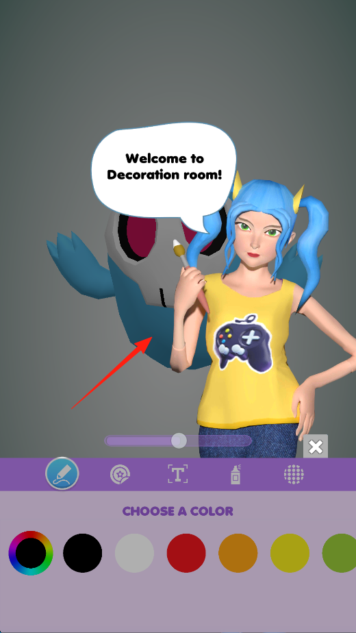 3、來到裝飾房間,依據(jù)“Welcome to Decoration room!”提示,選擇顏色,為角色旁的物品上色,通過色彩選擇與繪制,完成裝飾任務(wù),,體驗創(chuàng)意發(fā)揮玩法,感受藝術(shù)創(chuàng)作的樂趣。