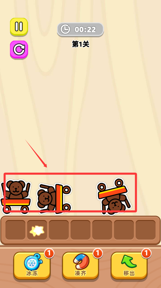 2、點(diǎn)擊一下上面三個(gè)小熊就能消除。