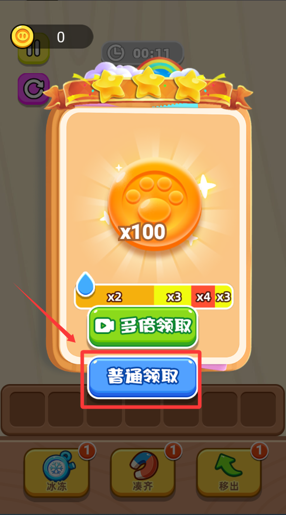 3、通關(guān)完成后就點(diǎn)一下普通領(lǐng)取獎(jiǎng)勵(lì)。