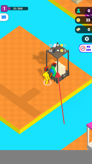 3、將材料運(yùn)送至交換點(diǎn),與綠色角色互動(dòng),兌換金幣(“25”)、經(jīng)驗(yàn),提升等級,解鎖新建造功能,完成資源循環(huán),升級基地。