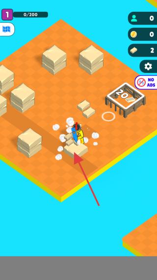 2、角色自動(dòng)挖掘沙堆,獲取材料(如“2”木材),注意資源數(shù)量變化,清理沙堆,擴(kuò)大可建造區(qū)域,推進(jìn)進(jìn)度。