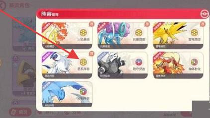2、在陣容推薦界面,根據(jù)箭頭指示,選擇強力的寶可夢如“急凍鳥”加入隊伍,依據(jù)不同寶可夢的屬性和技能,搭配出合理的戰(zhàn)斗陣容,提升隊伍戰(zhàn)斗力。