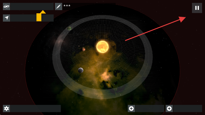 3、點(diǎn)擊畫(huà)面右上角暫停圖標(biāo),可暫停當(dāng)前太陽(yáng)系模擬的運(yùn)行進(jìn)程。