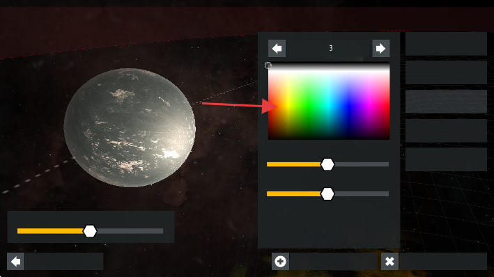 2、在行星編輯界面,通過(guò)右側(cè)色彩面板,自定義行星的外觀顏色。