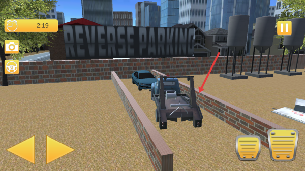 3、抵達(dá)停車區(qū)域,操控拖車倒車入位,精準(zhǔn)停在指定處,完成任務(wù)解鎖新關(guān)卡。