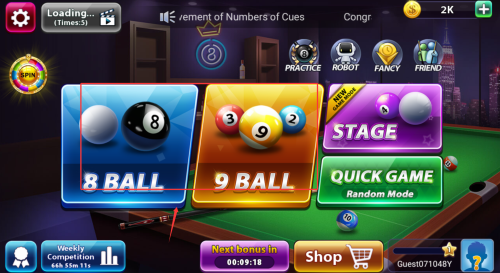 3、在模式選擇界面切換8球或9球規(guī)則,每種玩法擁有獨立的計分系統(tǒng)與AI難度。