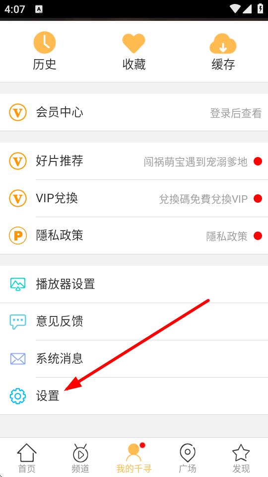 2、在我的千尋頁面中,找到并點擊設置選項。