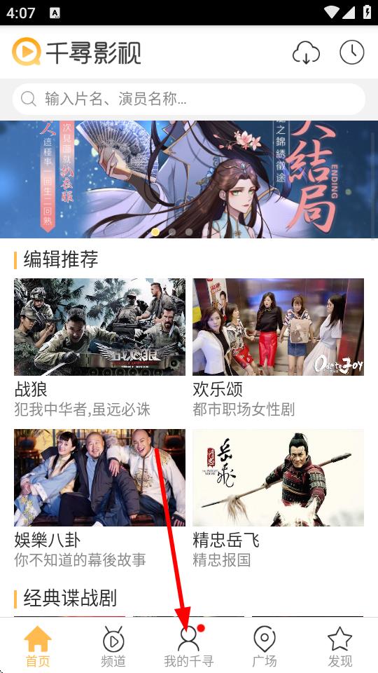 1、打開千尋影視app,點擊底部導航欄中間的我的千尋選項。