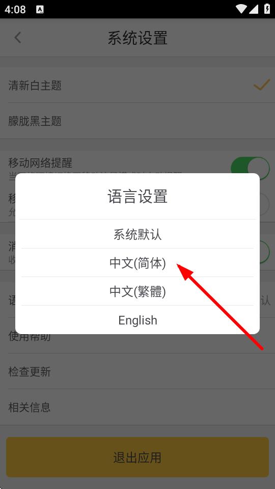 4、在彈出的語言設置選擇框中,根據需求選擇中文簡體,即可完成語言設置選擇。