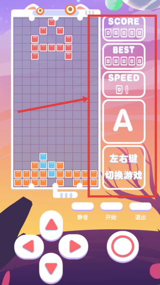 1、模式選擇:通過“左右鍵切換游戲”選模式(如A、B模式),點擊“開始”進入關(guān)卡。