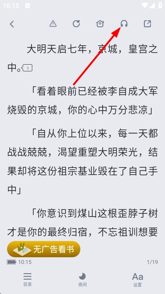 4、在閱讀界面中,點(diǎn)擊頂部的耳機(jī)圖標(biāo),即可開始聽書。