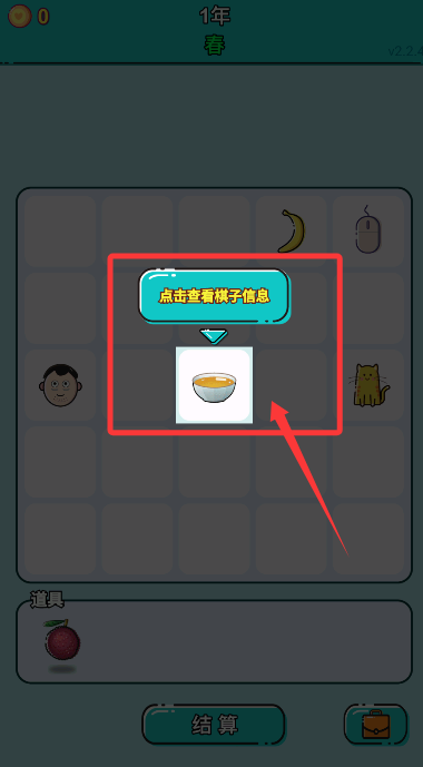 3、進入打工場景,點擊棋盤上“點擊查看棋子信息”的茶杯圖標,了解其作用。