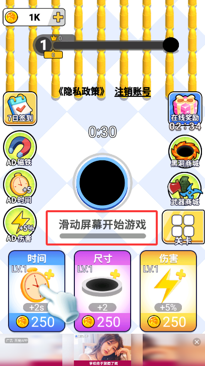 2、開始游戲后,吞噬你面前的子彈,增加黑洞體型。
