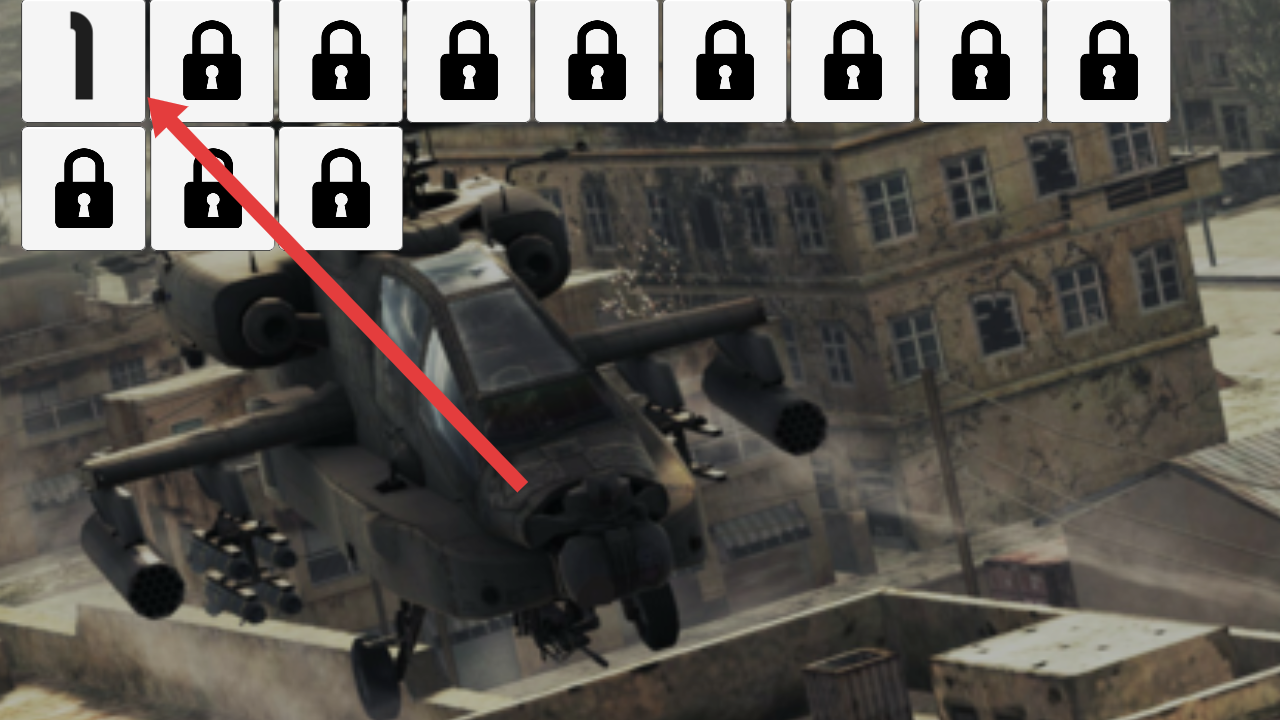 1、在關(guān)卡選擇界面,點擊左上角標(biāo)有【1】的解鎖關(guān)卡,進入直升機作戰(zhàn)相關(guān)任務(wù),開啟首關(guān)挑戰(zhàn)。