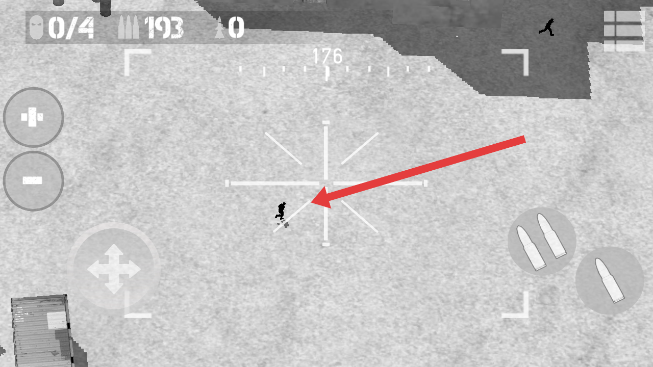 2、進入射擊場景后,操控準(zhǔn)星瞄準(zhǔn)畫面中的敵人,利用武器射擊,完成擊殺目標(biāo),注意觀察彈藥和血量狀態(tài)。