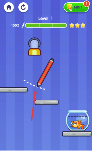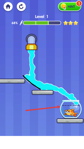 1、畫線引流的核心操作:通過屏幕畫線規(guī)劃水流路徑,引導(dǎo)水避開障礙物、繞過陷阱,最終流入小魚的魚缸,畫線的合理性直接決定引流效果,是闖關(guān)的關(guān)鍵。