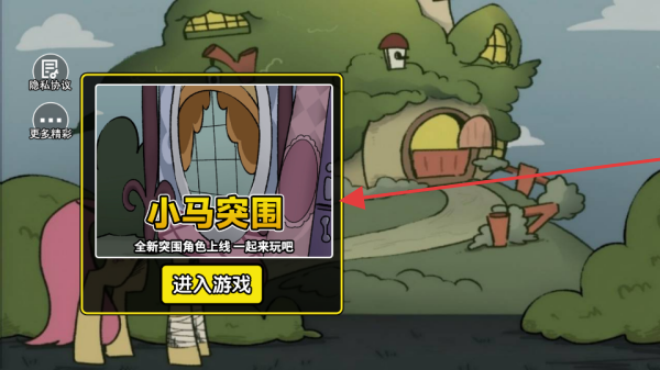 2、看到“小馬突圍”新角色上線提示,點擊【進入游戲】,體驗全新角色的玩法和特色。