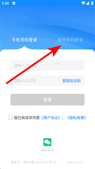 1、打開(kāi)汽配云助手APP,進(jìn)入登錄界面后,點(diǎn)擊賬號(hào)密碼登錄。