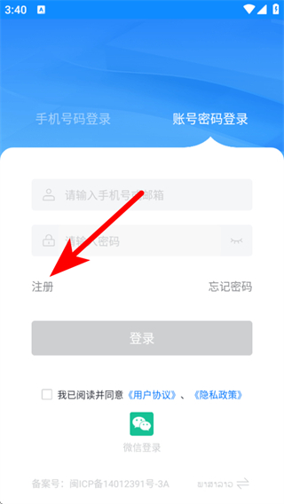 2、在賬號(hào)密碼登錄界面,點(diǎn)擊注冊(cè)的按鈕,進(jìn)入注冊(cè)的頁(yè)面。