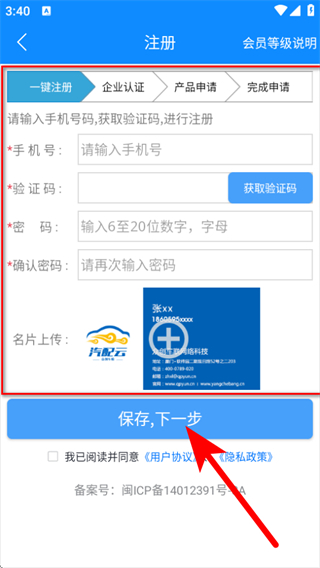 3、在頁(yè)面依次填寫手機(jī)號(hào)等信息后,點(diǎn)擊保存下一步,完成后續(xù)操作。