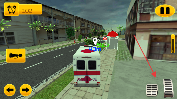 3、點(diǎn)擊右側(cè)踏板,驅(qū)動救護(hù)車駛向救援地點(diǎn)。