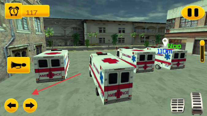 2、操控左側(cè)箭頭按鍵,調(diào)整救護(hù)車轉(zhuǎn)向。