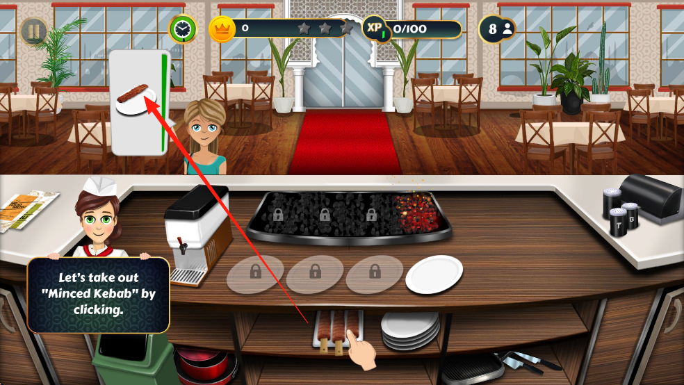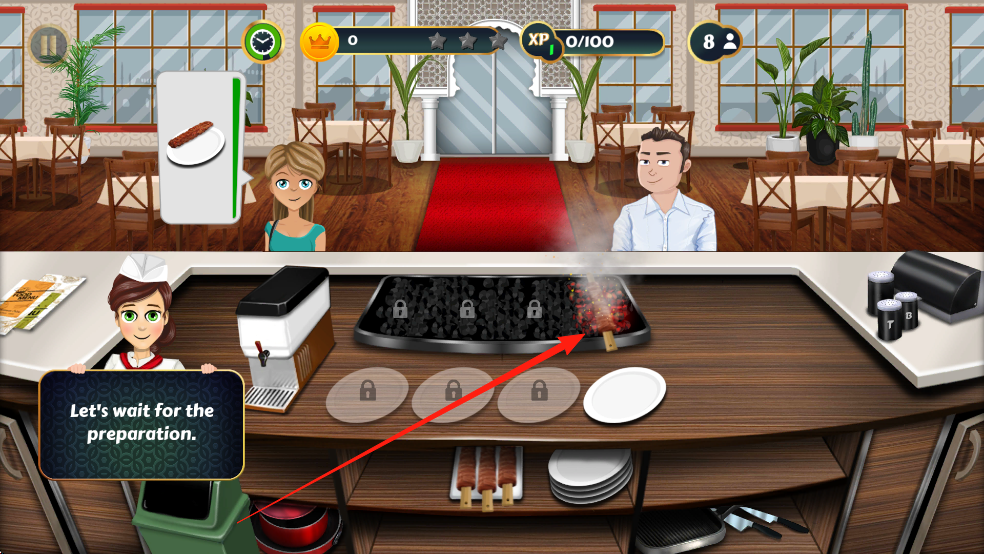 1、研習顧客口味與食材特性,優(yōu)先烤制高需求組合菜品,合理分配烹飪時間,連續(xù)成功滿足顧客觸發(fā)連鎖好評。