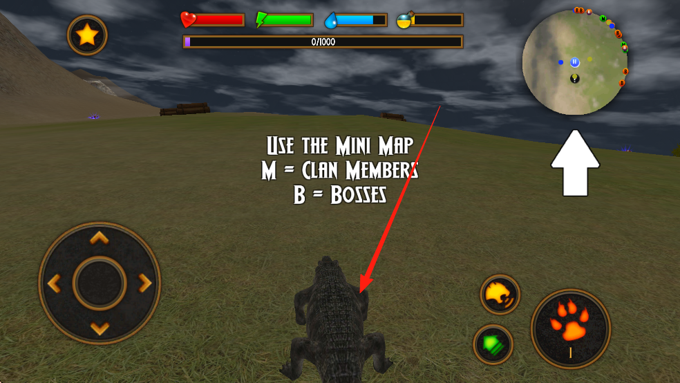 1、基礎(chǔ)操作體系:點(diǎn)擊屏幕控制鱷魚移動,長按屏幕觸發(fā)潛行模式,滑動屏幕調(diào)整攻擊方向,通過組合操作完成復(fù)雜捕獵任務(wù)操作簡單直觀,讓玩家專注策略規(guī)劃。