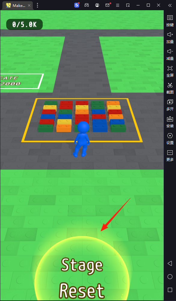 1、在積木游戲場(chǎng)景,點(diǎn)擊“Stage Reset”重置關(guān)卡,借重置機(jī)制,清空當(dāng)前布局,讓藍(lán)色角色回到初始積木堆旁,重新規(guī)劃搭建,體驗(yàn)從零開始的創(chuàng)造樂趣。