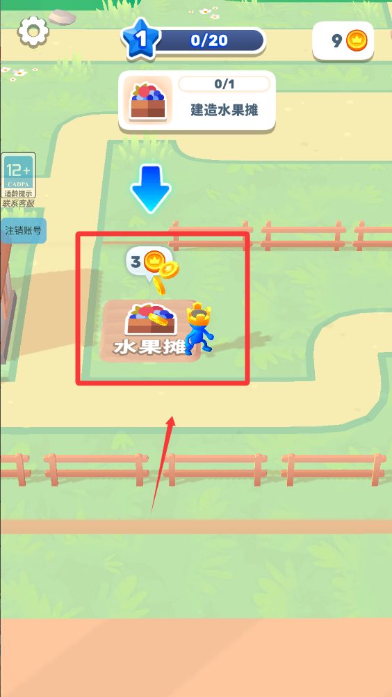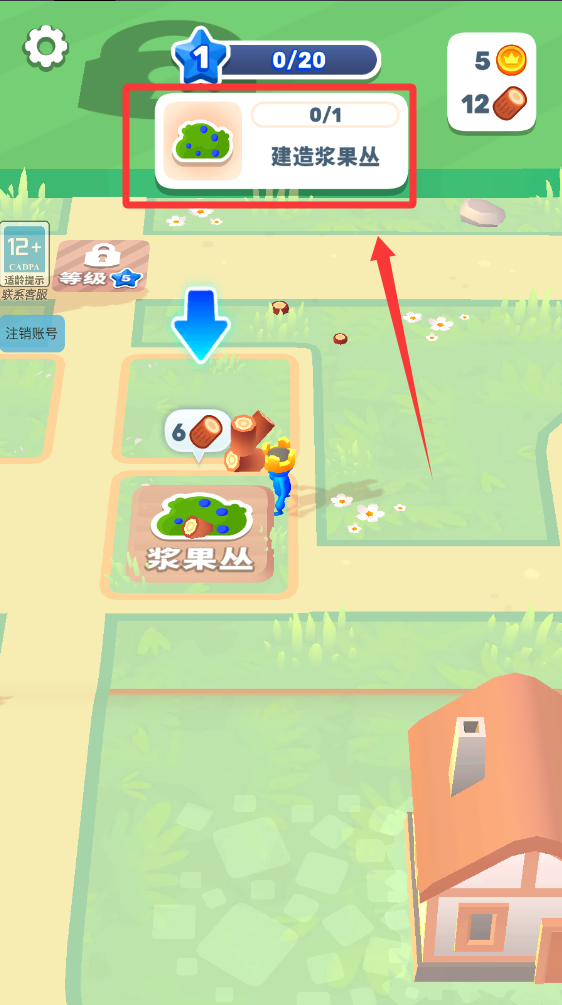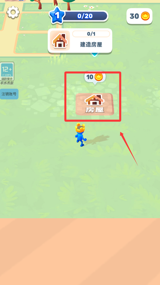 1、先建造一個房屋,移動藍色小人過去就能自動建造。