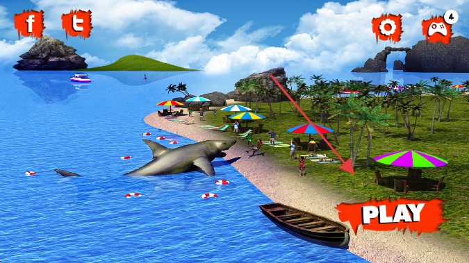 1、點擊沙灘場景的【PLAY】,開啟鯊魚模擬獵殺。