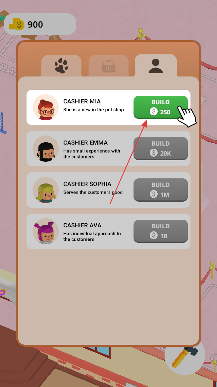 3、持續(xù)建設(shè)設(shè)施、招募員工,升級(jí)店鋪,吸引更多寵物相關(guān)業(yè)務(wù),積累金幣,拓展寵物店規(guī)模,提升經(jīng)營(yíng)等級(jí)。