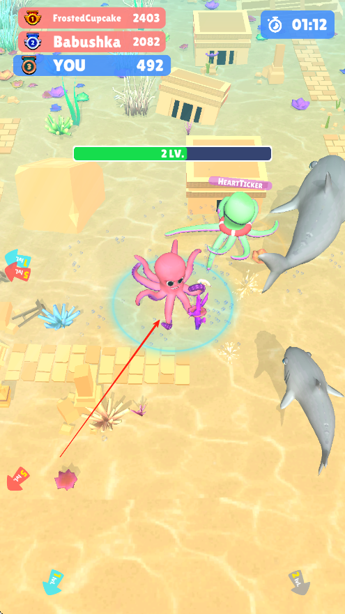 2、吞噬成長機(jī)制:遵循“吞噬弱小則成長”的核心規(guī)則,章魚的體型會(huì)隨吞噬量逐漸變大,解鎖更廣闊的活動(dòng)范圍,從被動(dòng)避險(xiǎn)到主動(dòng)捕食,體驗(yàn)成長的成就感。