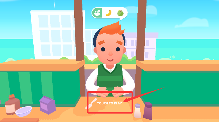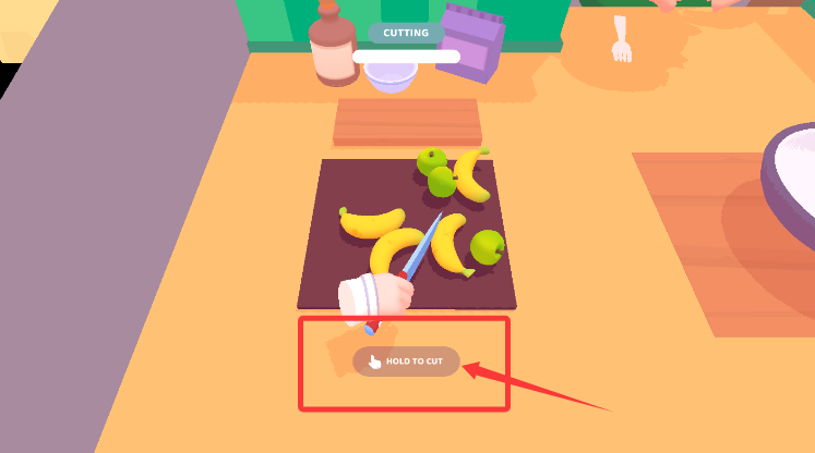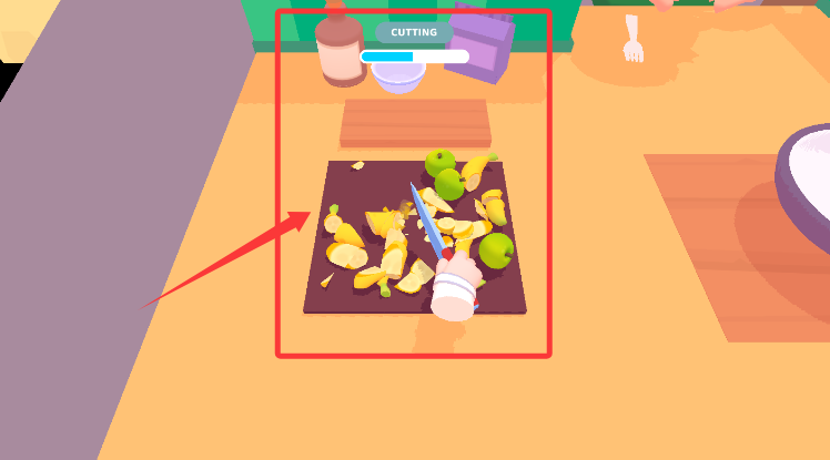 2、進(jìn)入食材處理界面,按住切割區(qū)域完成水果蔬菜的加工準(zhǔn)備。