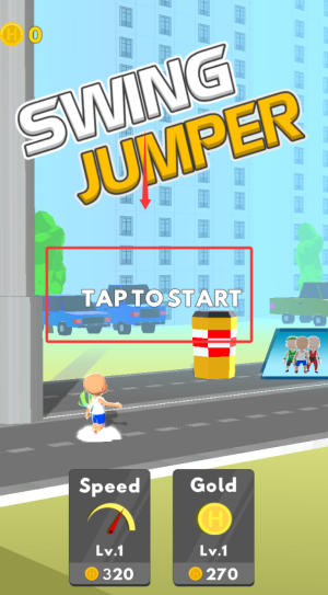 1、輕觸屏幕中央TAPTOSTART按鈕立即開(kāi)啟跳遠(yuǎn)挑戰(zhàn)之旅。