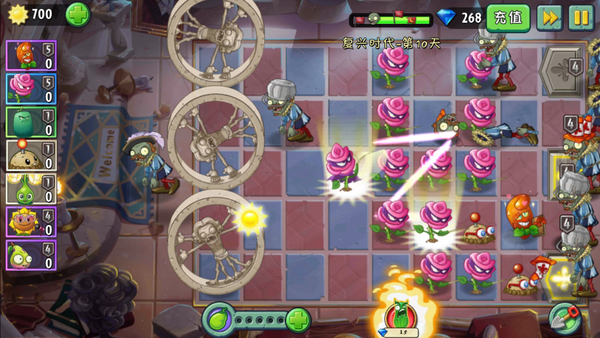 1、策略布陣:游戲的每一關(guān)都要求玩家在有限的時(shí)間內(nèi)合理安排植物的布陣,選擇合適的植物來(lái)應(yīng)對(duì)不同類型的敵人。部署的成功與否直接影響戰(zhàn)斗結(jié)果,因此需要深思熟慮。